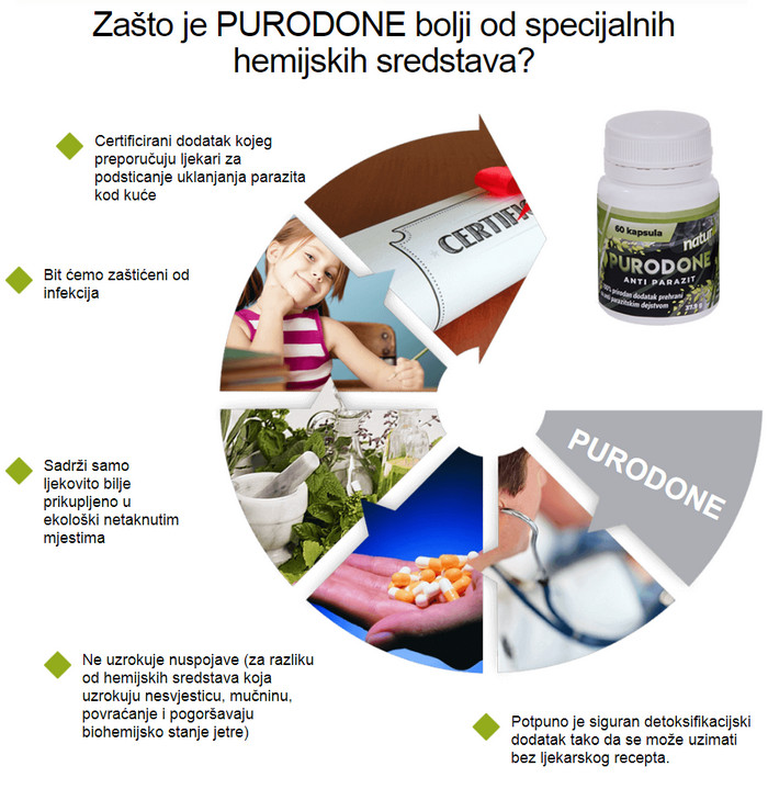 Upute za upotrebu kapsula od parazita Purodone. Programeri preporučuju pridržavanje sistematskog pristupa – ne preskačite uzimanje tableta kako bi se tijelo brzo očistilo od crva. U prosjeku, terapijski kurs traje 3-4 tjedna, pod uvjetom da redovno i savjesno uzimate kapsule tri puta dnevno. Ako je potrebno, porazgovarajte o ovom pitanju sa svojim liječnikom, jer će rezultat ovisiti o individualnim karakteristikama tijela, kao i o stepenu oštećenja tijela parazitima.