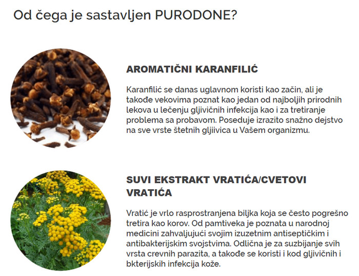 Upute za upotrebu kapsula od parazita Purodone. Programeri preporučuju pridržavanje sistematskog pristupa – ne preskačite uzimanje tableta kako bi se tijelo brzo očistilo od crva. U prosjeku, terapijski kurs traje 3-4 tjedna, pod uvjetom da redovno i savjesno uzimate kapsule tri puta dnevno. Ako je potrebno, porazgovarajte o ovom pitanju sa svojim liječnikom, jer će rezultat ovisiti o individualnim karakteristikama tijela, kao i o stepenu oštećenja tijela parazitima.